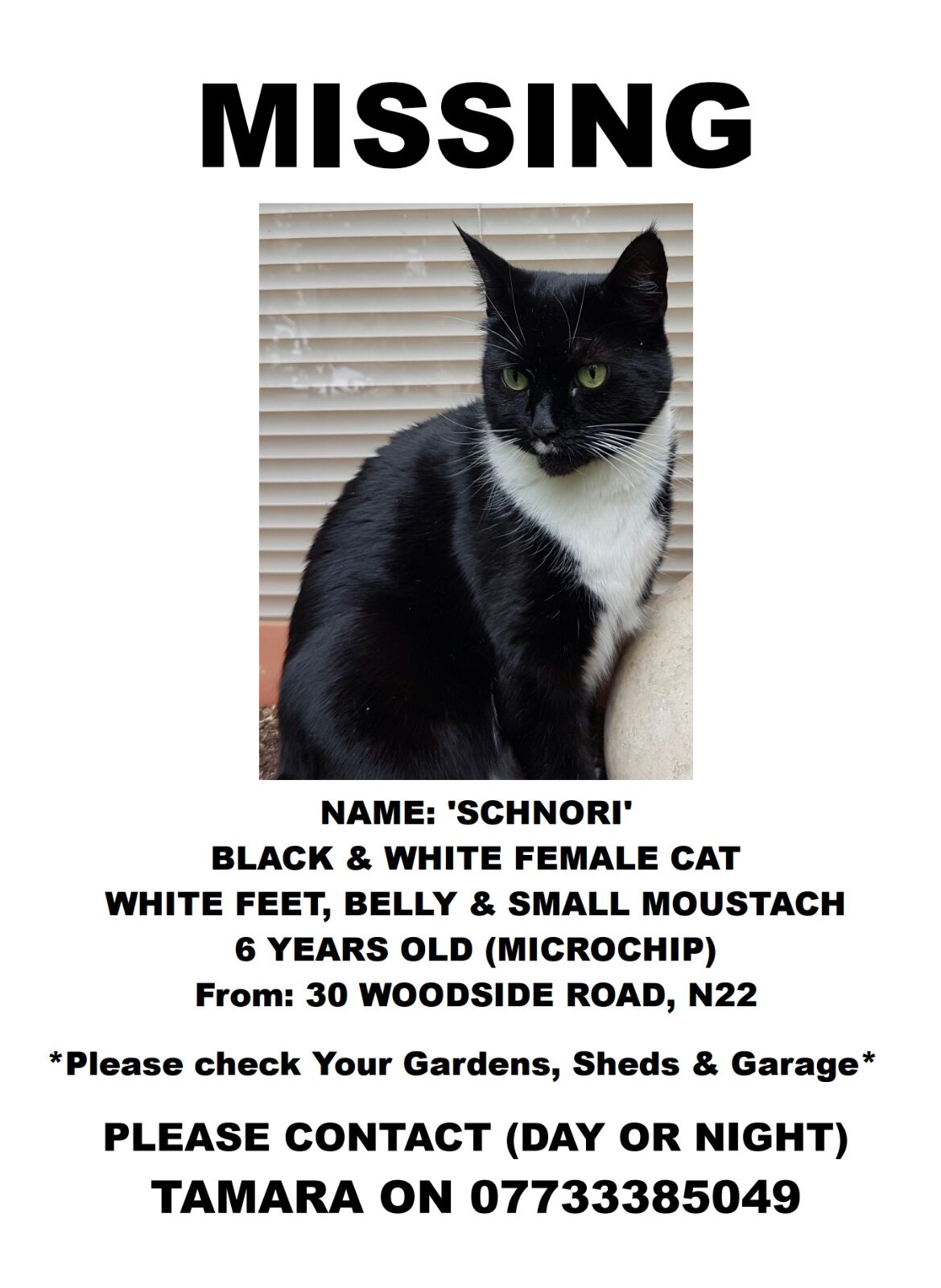 Lost Black White Cat Woodside Rd N22 Harringay Online
